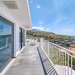 Gli ospiti possono godere di una vista sulla spiaggia sul mare dalla terrazza presso la Casa Dos Amores Calheta, situata a 3 km da Prazeres.